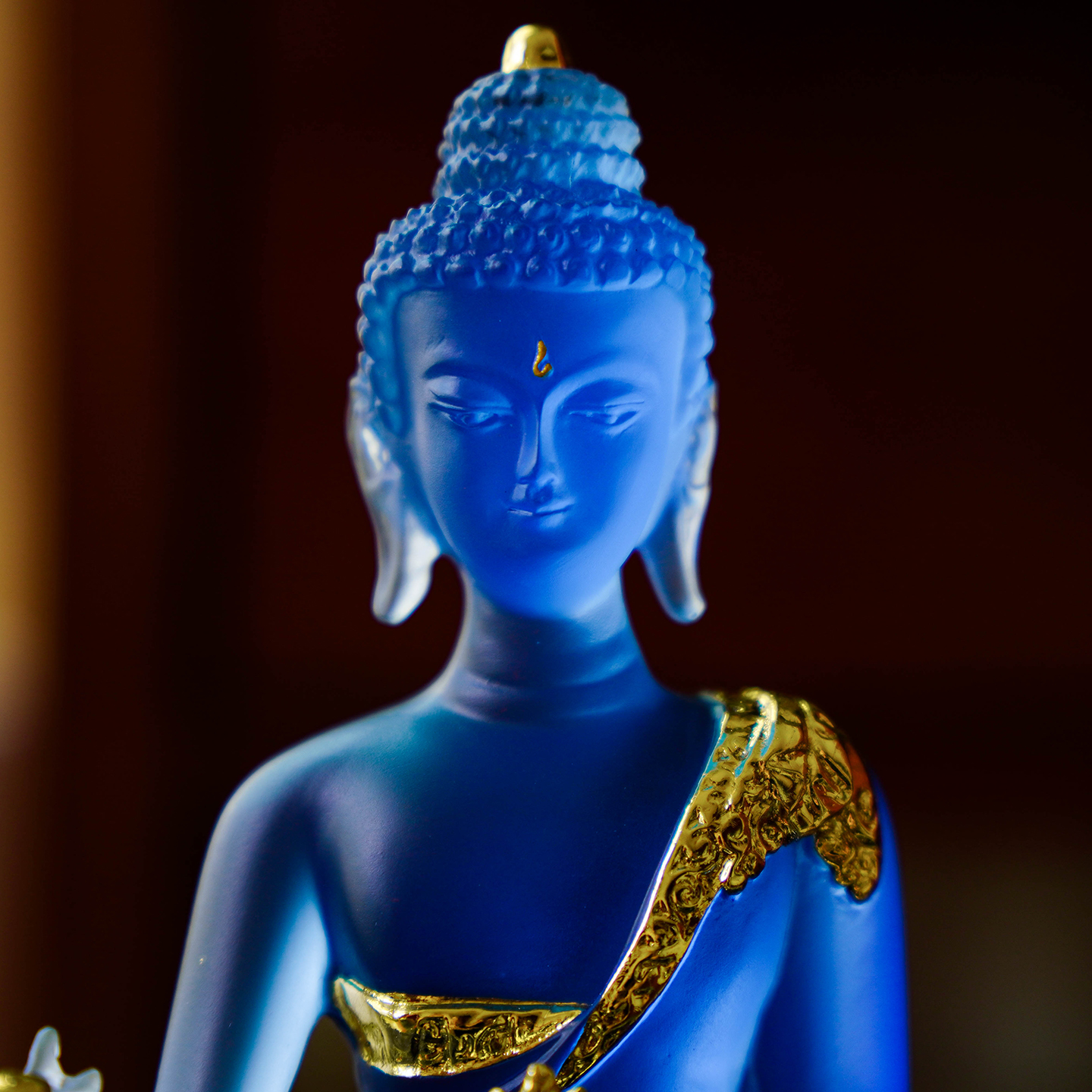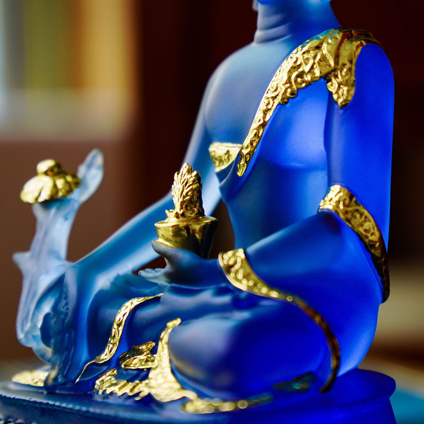药师琉璃光如来树脂水琉璃药师佛家用佛堂供奉随身小佛像19cm摆件