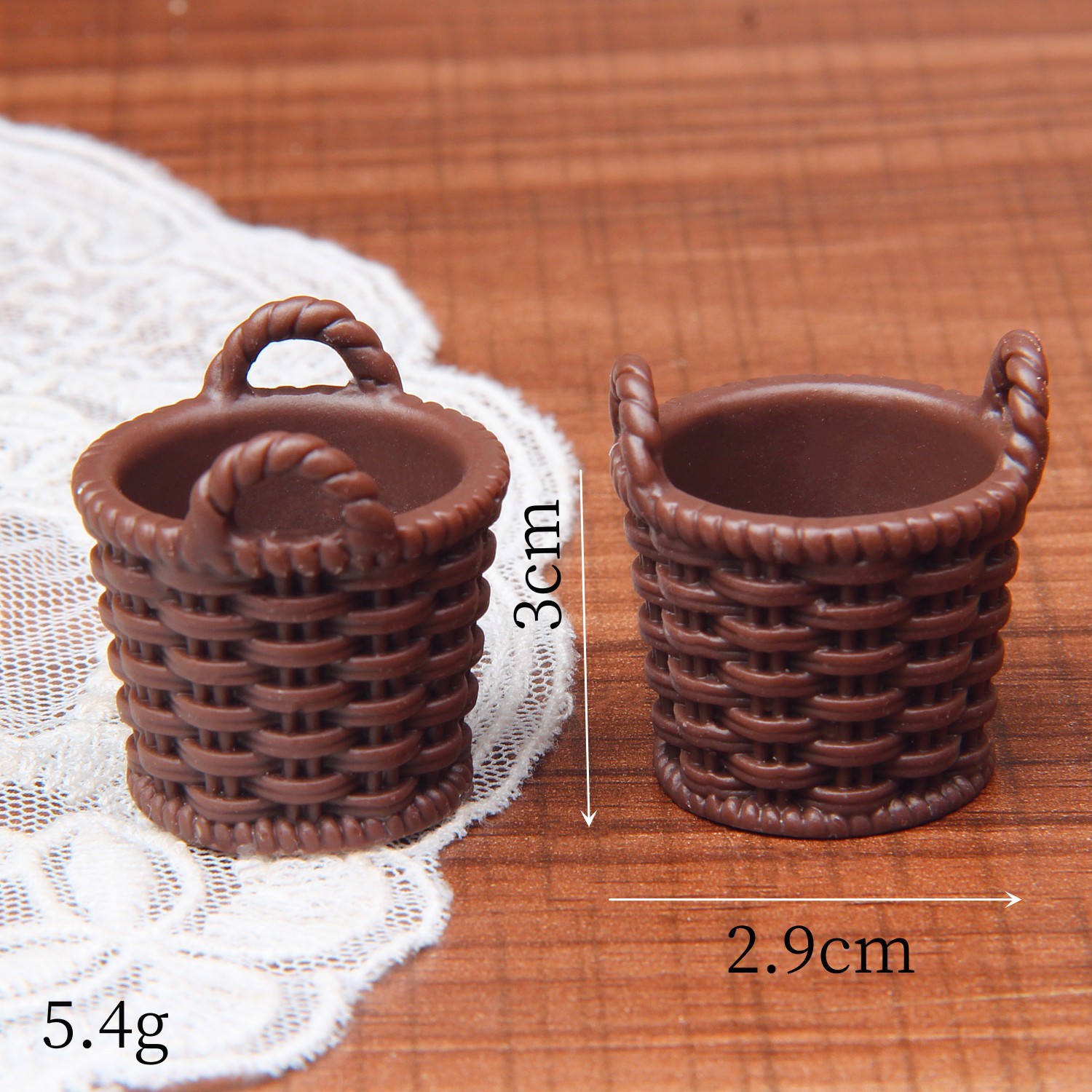 娃娃屋收纳篮子树脂手提篮挂耳框迷你仿藤编菜篮竹篮模型小摆件