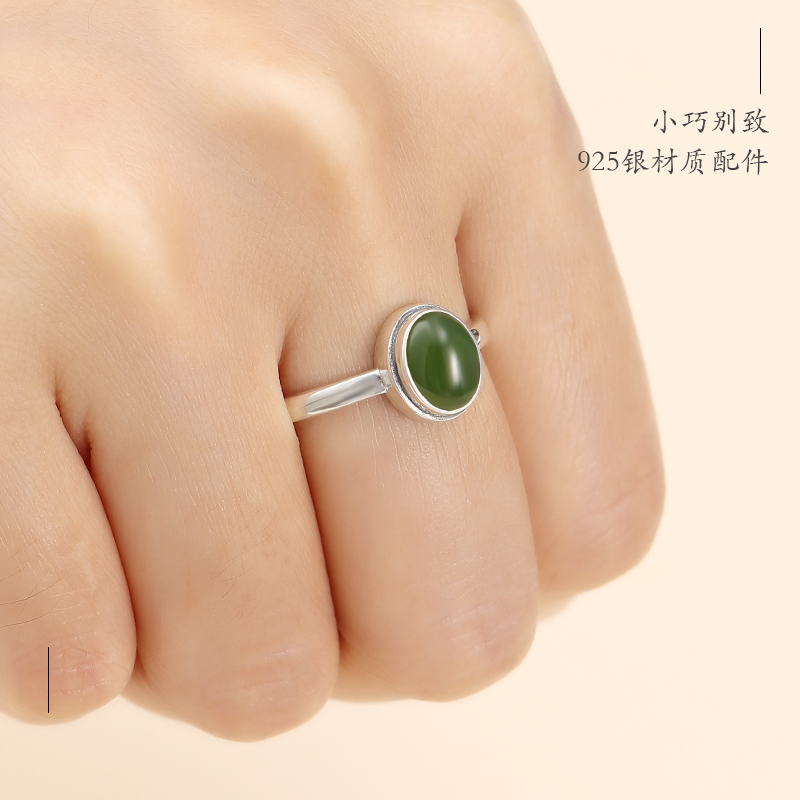 S925纯银戒指空托女6*8镶嵌琥珀蜜蜡绿松和田玉翡翠玉石戒托10*14