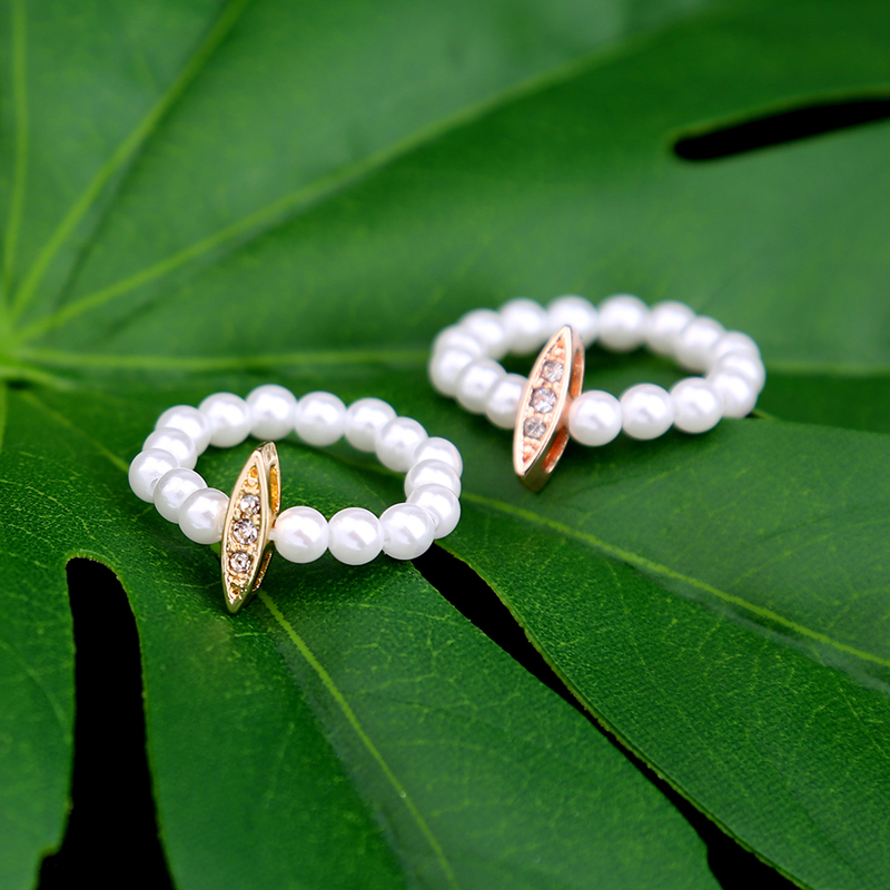 珍珠女士戒指 可调节大小欧美风格宫廷气质宝石镶钻女士衣服配饰