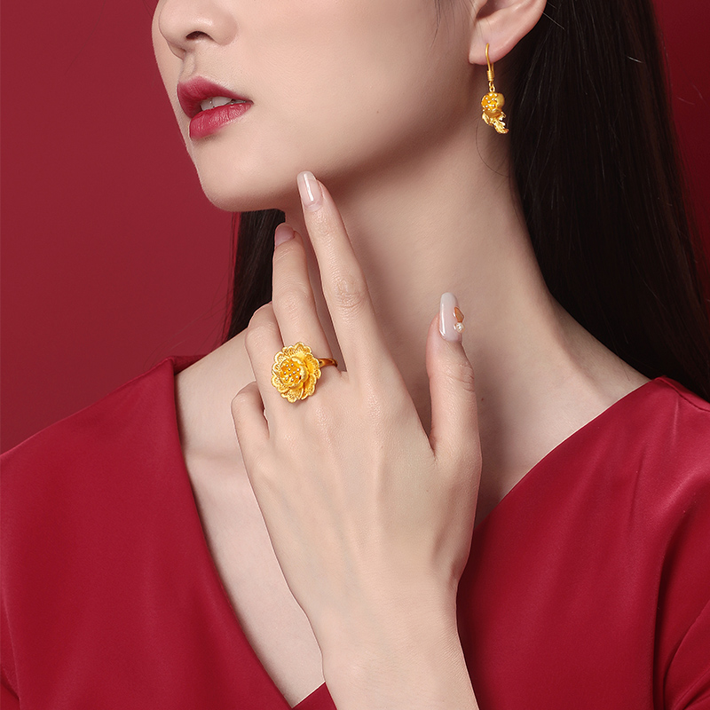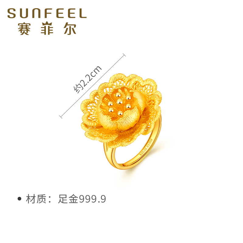 赛菲尔婚书系列黄金戒指足金999.9芳华绝代牡丹花指环女结婚送礼