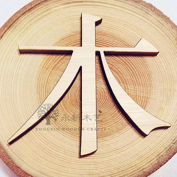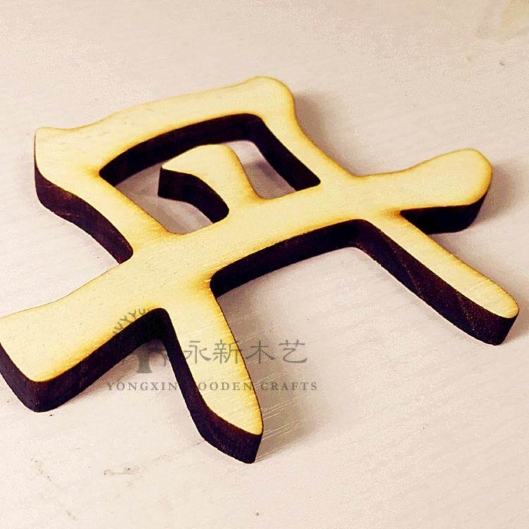 实木质汉字激光切割汉字木头 精准原木汉字定制不同字体字符木片