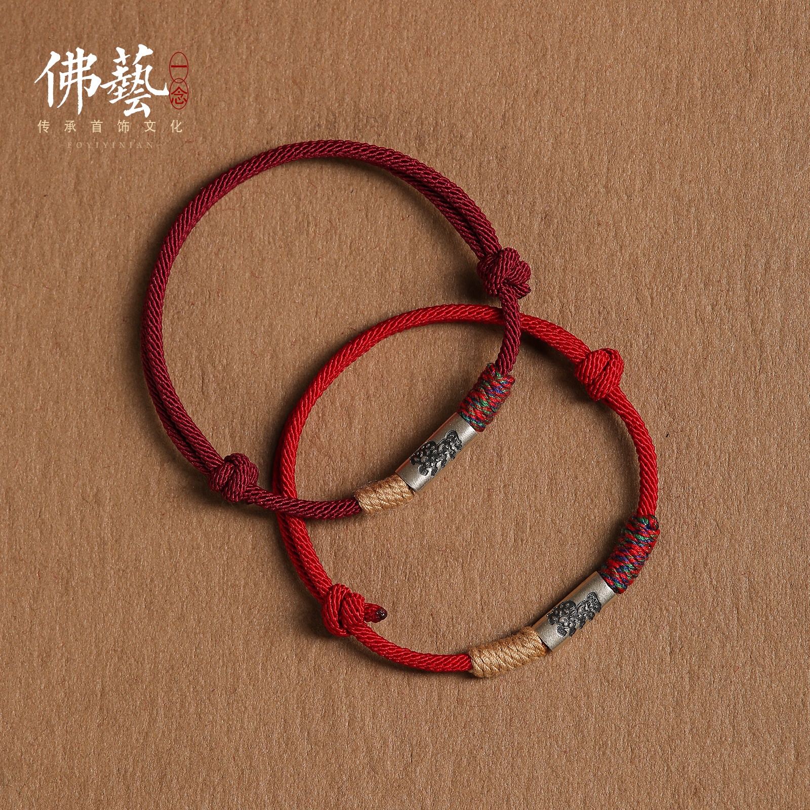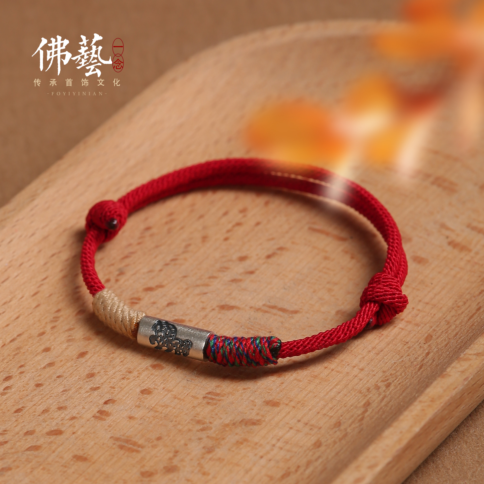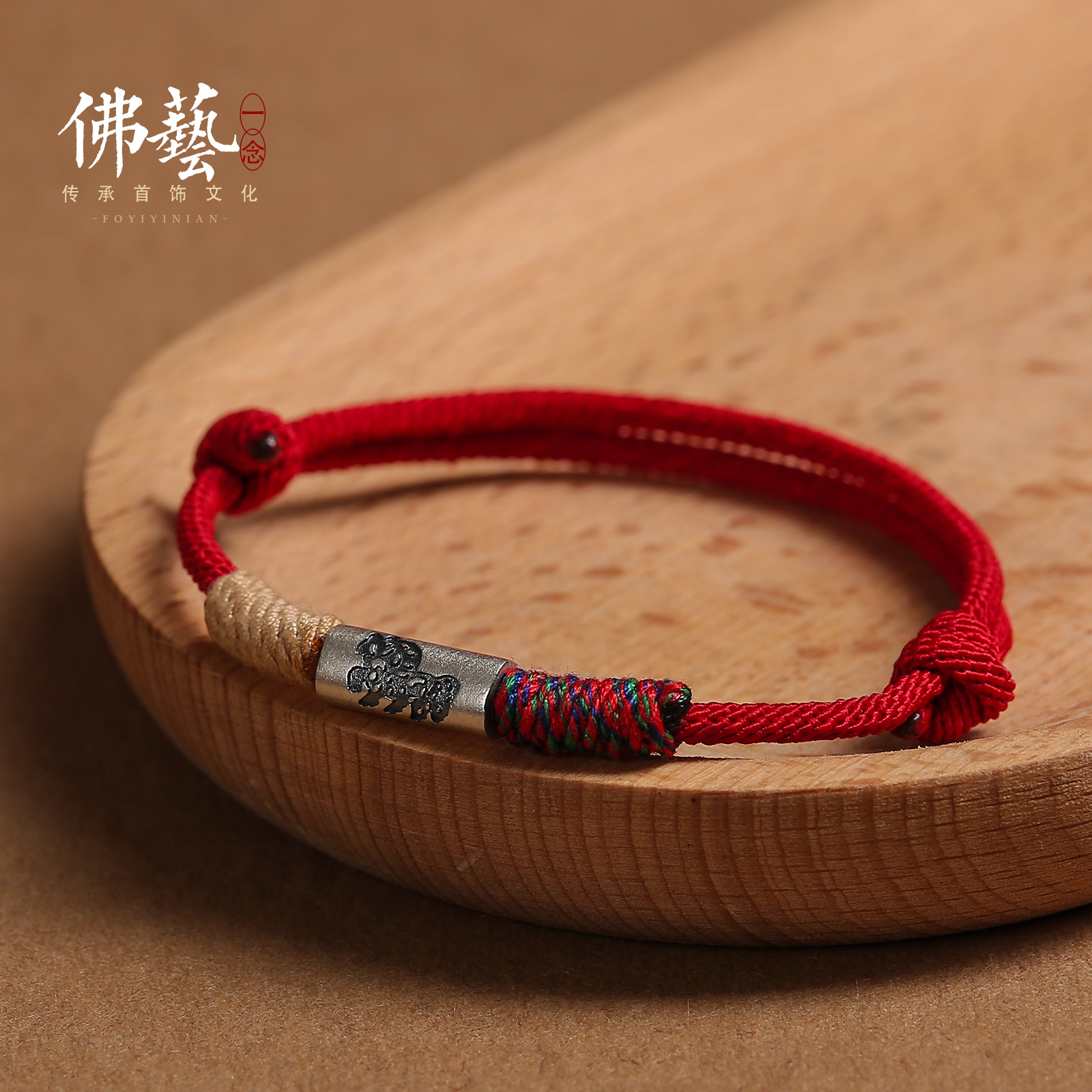 十二生肖红绳纯银手链女款鼠马牛兔本命年转运编织手绳男士送男友