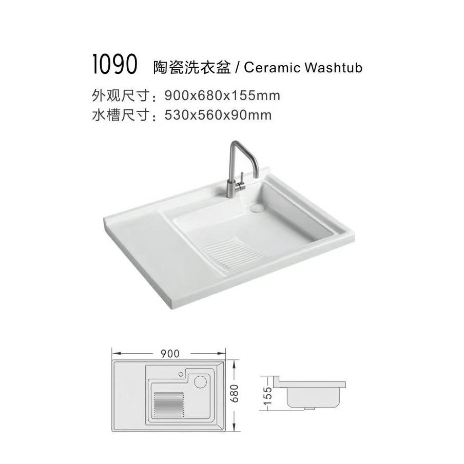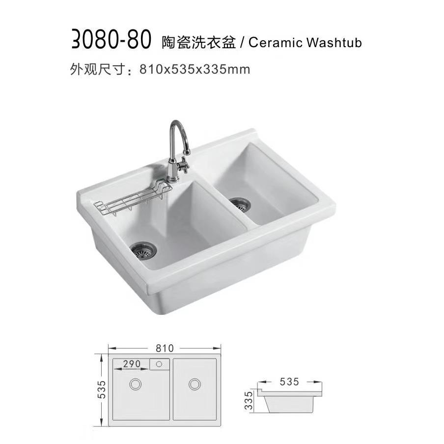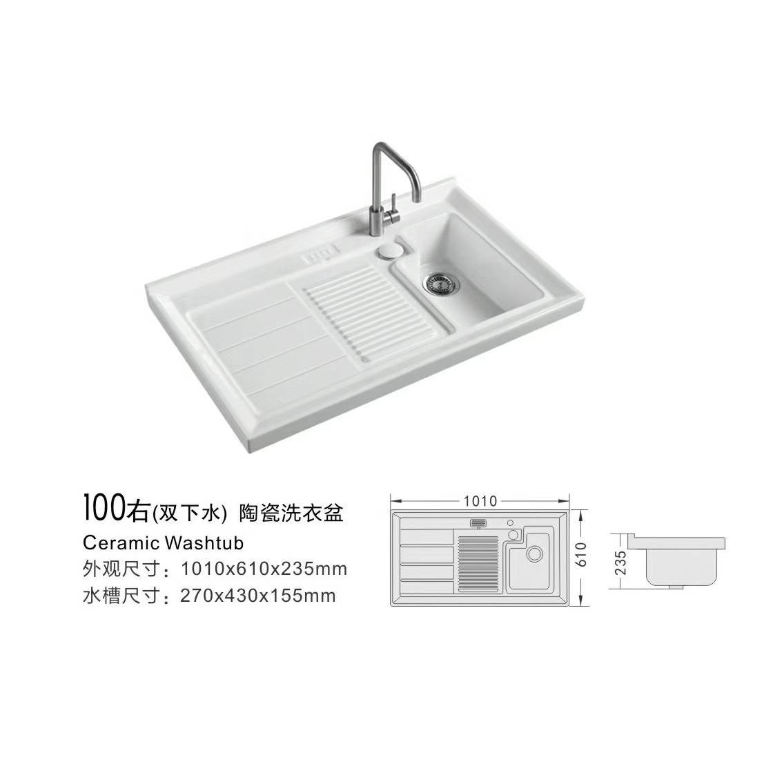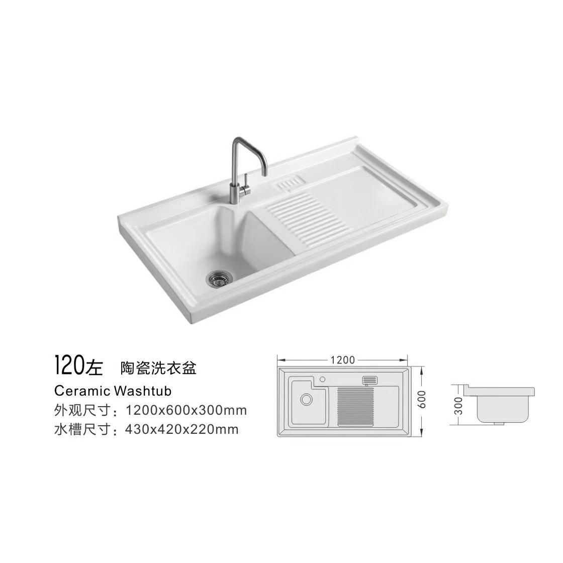 洗衣机伴侣陶瓷盆切角台面左右洗衣槽陶瓷洗衣盆深度洗衣槽