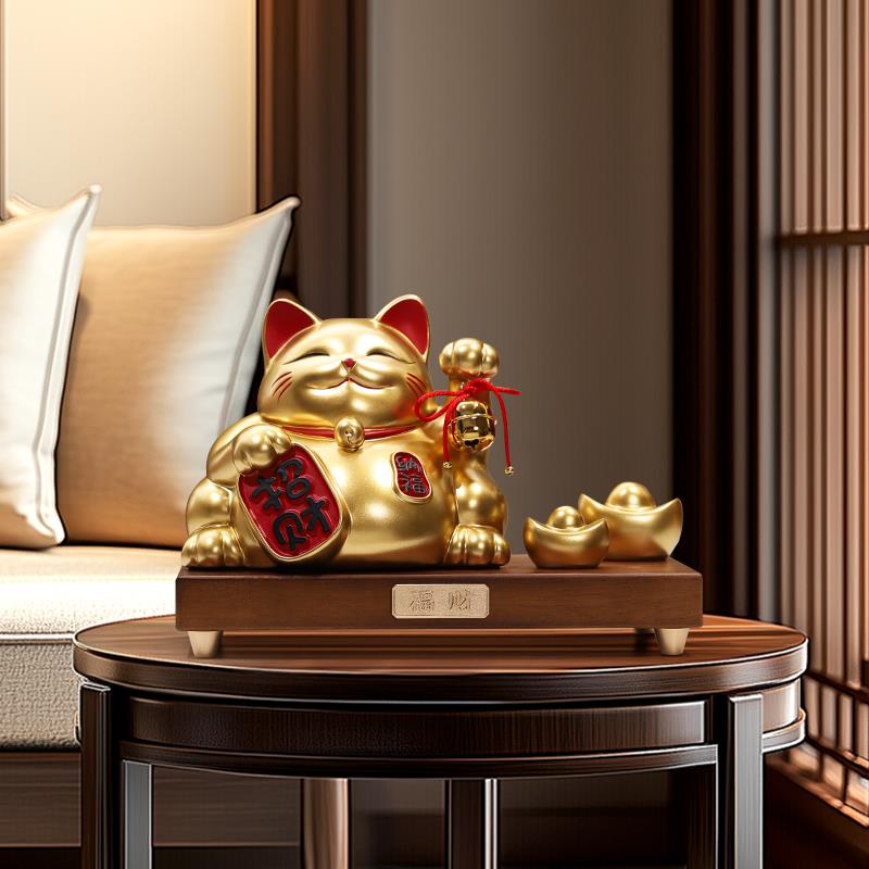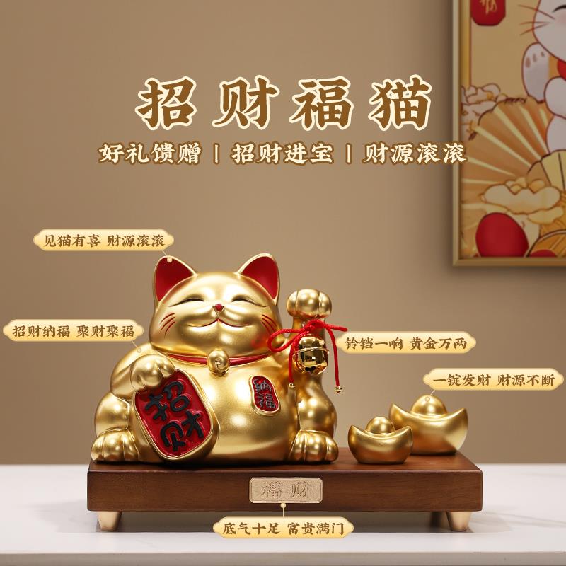 招财纳福猫摆件新中式店铺收银前台办公室桌面装饰品开 业大吉礼