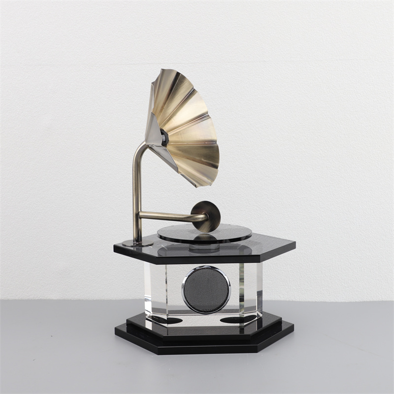 简约现代复古水晶金属p留声机样板间家居客厅书房创意桌面装饰摆