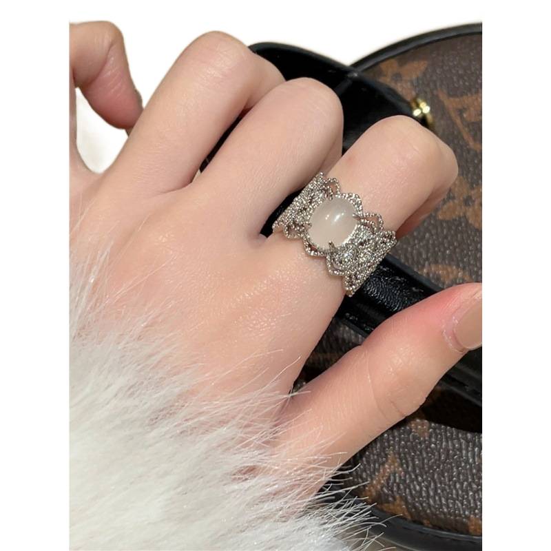 法式白色锆石戒指女气质气奢华精致高级感轻奢食指环优雅