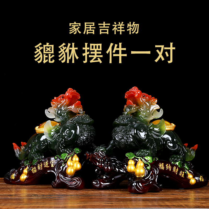招财貔貅摆件大公母一对开业礼品皮丘店铺办公室收银台装饰品