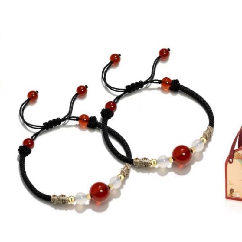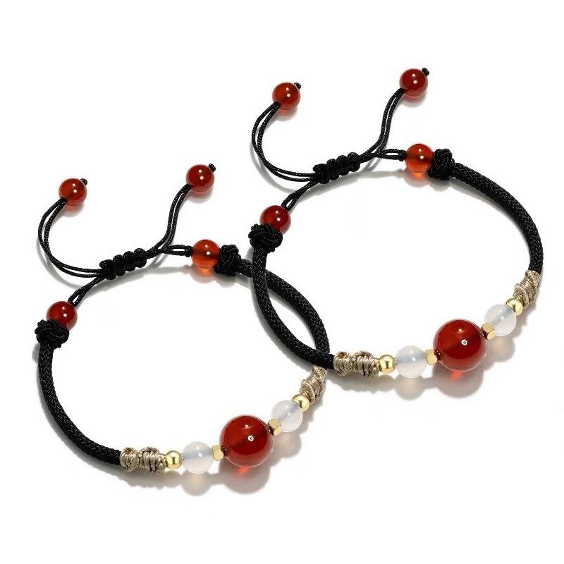 几何自然手链倒角方粒玛瑙红色手串鸿福齐天手工编织手绳