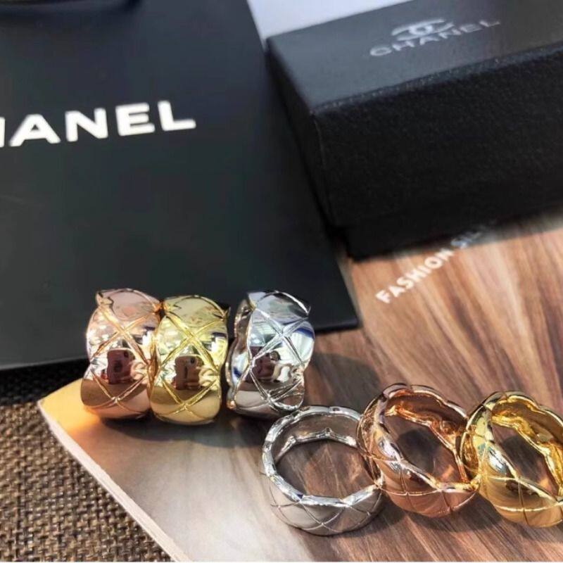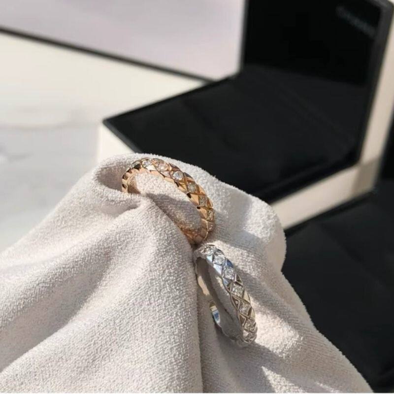 菱格纹coco戒指女小众百搭叠戴情侣对戒宽版窄指环小香风高级素感