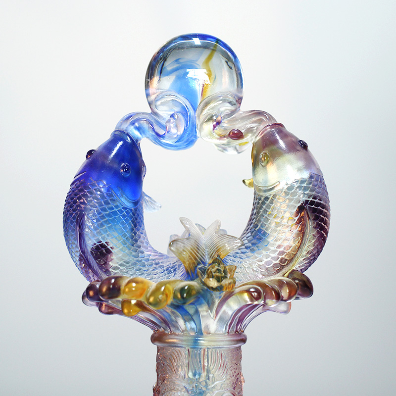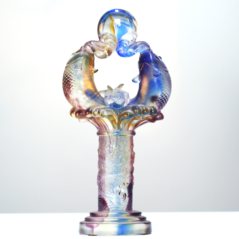 琉璃双鱼共创辉煌风水摆件客厅办公商铺前台桌面装饰摆放商务送礼