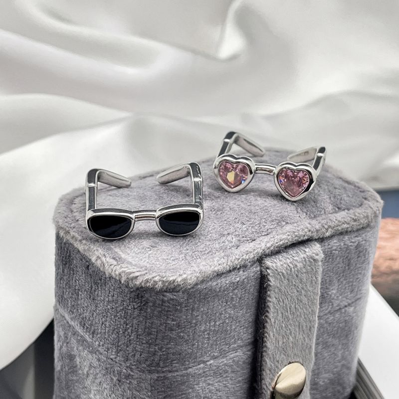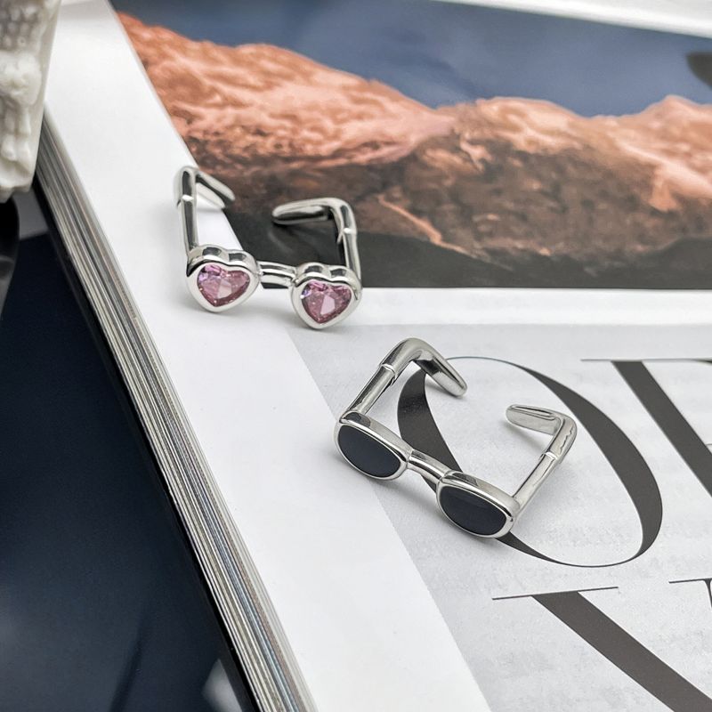 复古墨镜戒指女甜酷粉钻眼镜情侣指环独特个ins小众设计感配饰