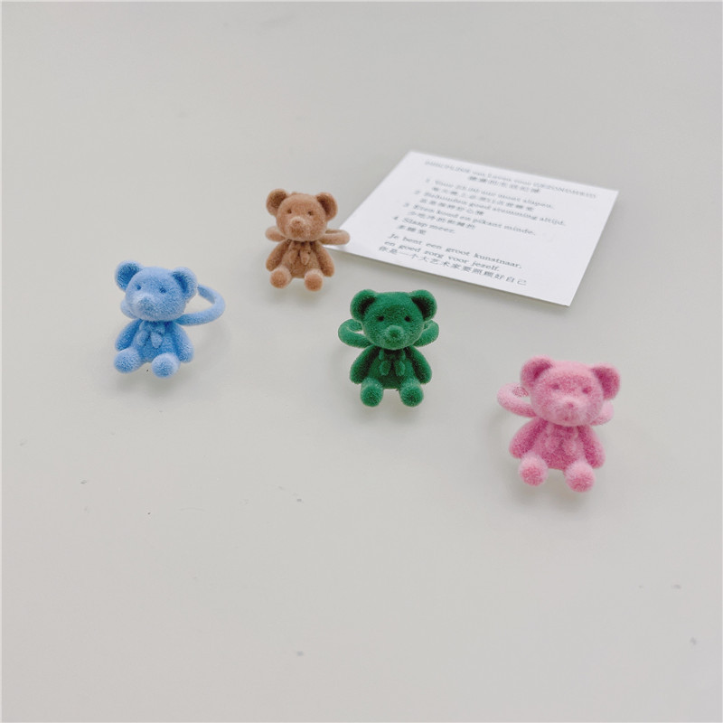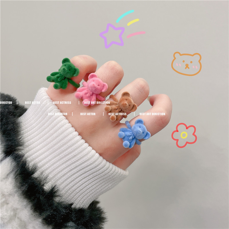 2022年新款植绒小熊开口戒指女秋冬小众设计可调节指环卡通食指戒