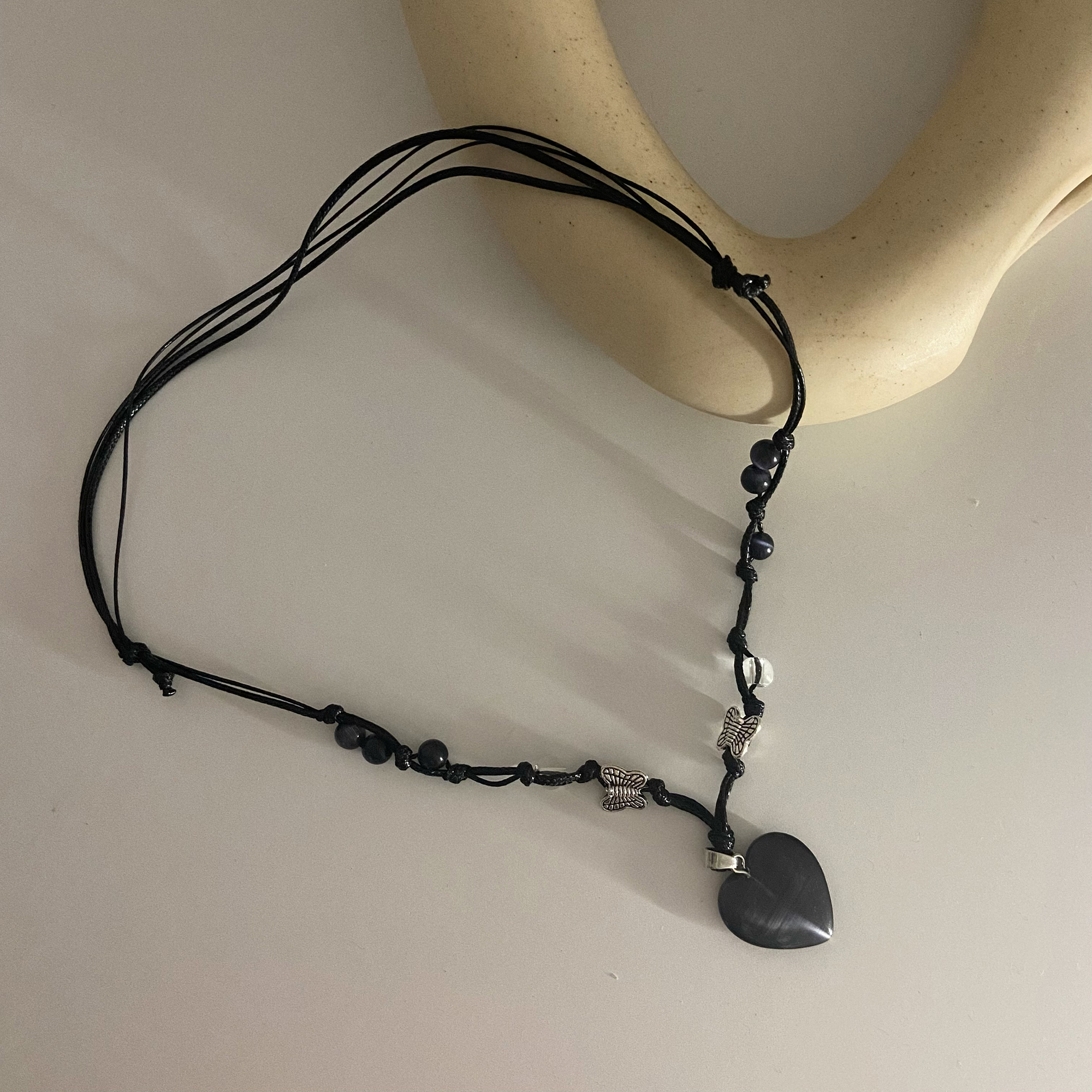 atmshop 韩国暗黑风爱心蝴蝶手作玉石串珠可调节项链情侣款颈绳