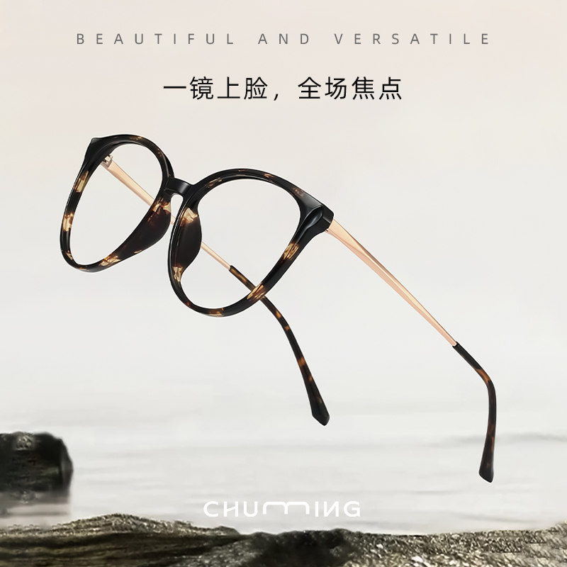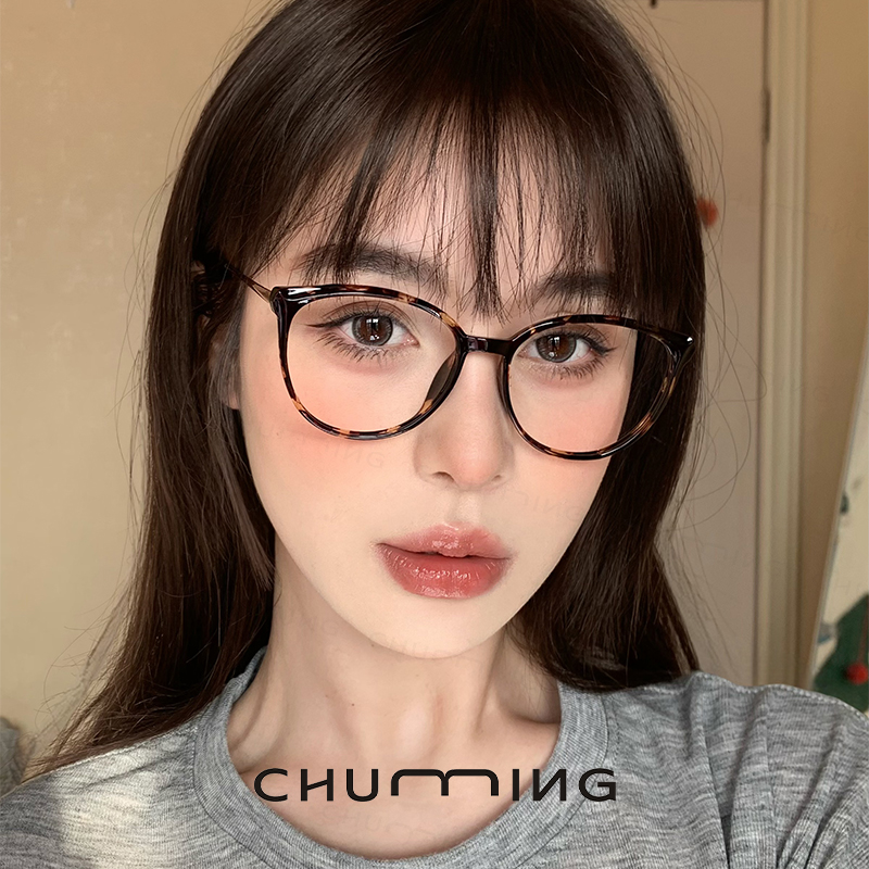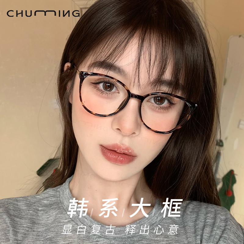 韩系玳瑁色猫眼眼镜女款近视可配有度数素颜神器大框豹纹眼睛镜架