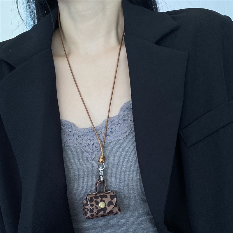 迷你皮质零钱包包挂脖项链女小巧长款皮绳毛衣链耳机保护套可斜挎
