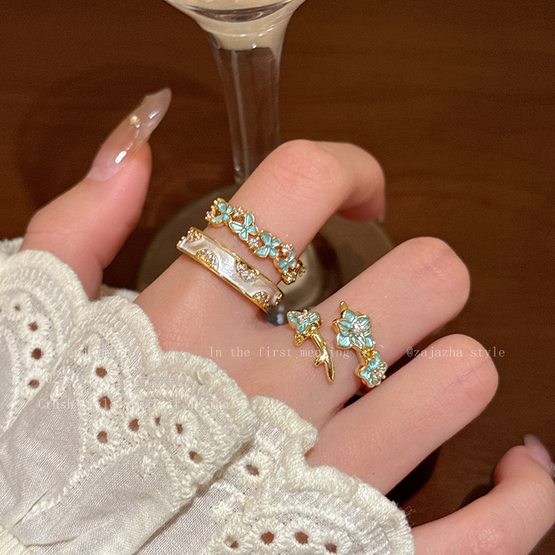 温柔绽放~鸢尾蝴蝶锆石开口戒指女款中古小众设计食指戒时尚指环