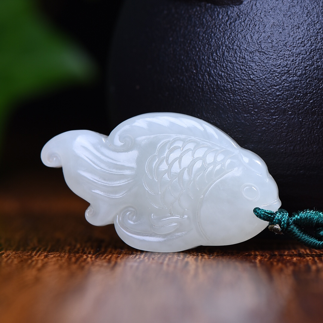 新疆和田玉羊脂玉白玉青白玉连年有余金鱼吊坠男女款挂件玉坠玉佩