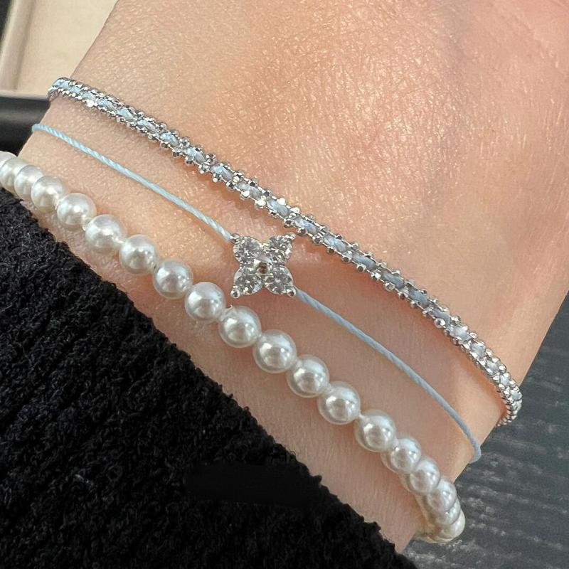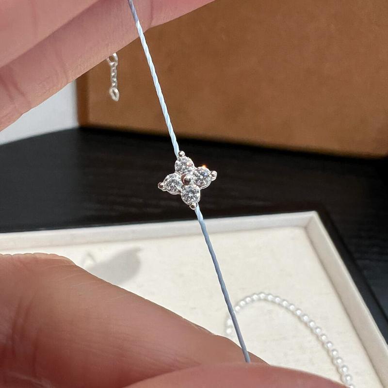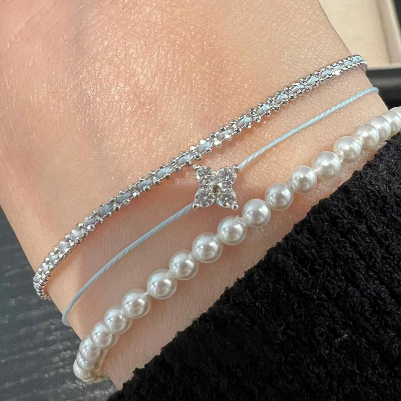 精致仿莫桑石四叶草极细水湖蓝手绳女款小众手链编织手绳轻奢手饰