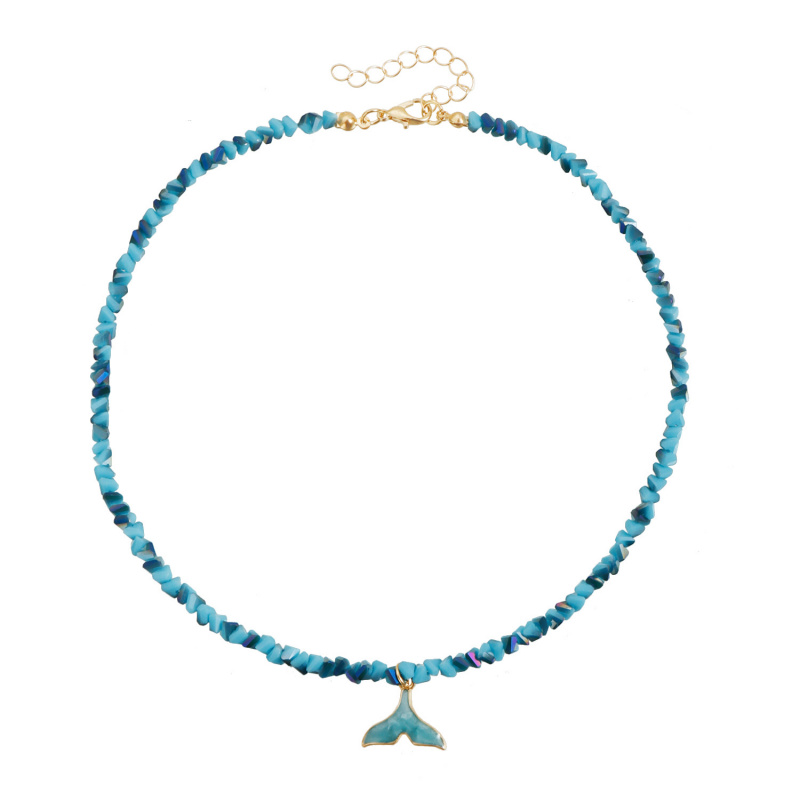 欧美饰品清新海洋风多切面玻璃项链时尚蓝色滴釉豚尾necklace首饰