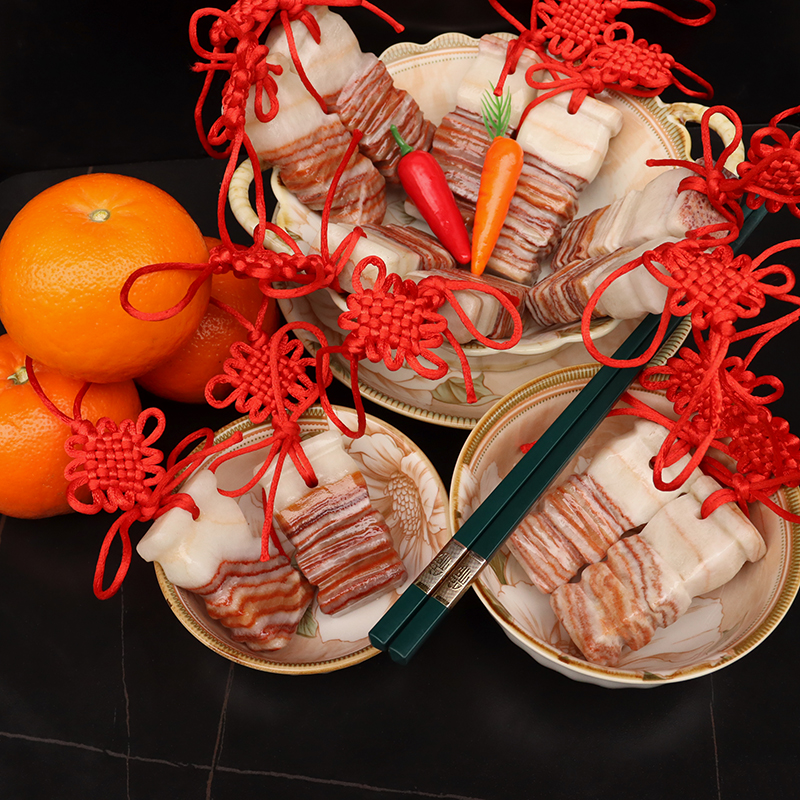 奇石摆件招财石材猪肉石五花肉装饰天然工艺品石雕挂件把玩件饰品