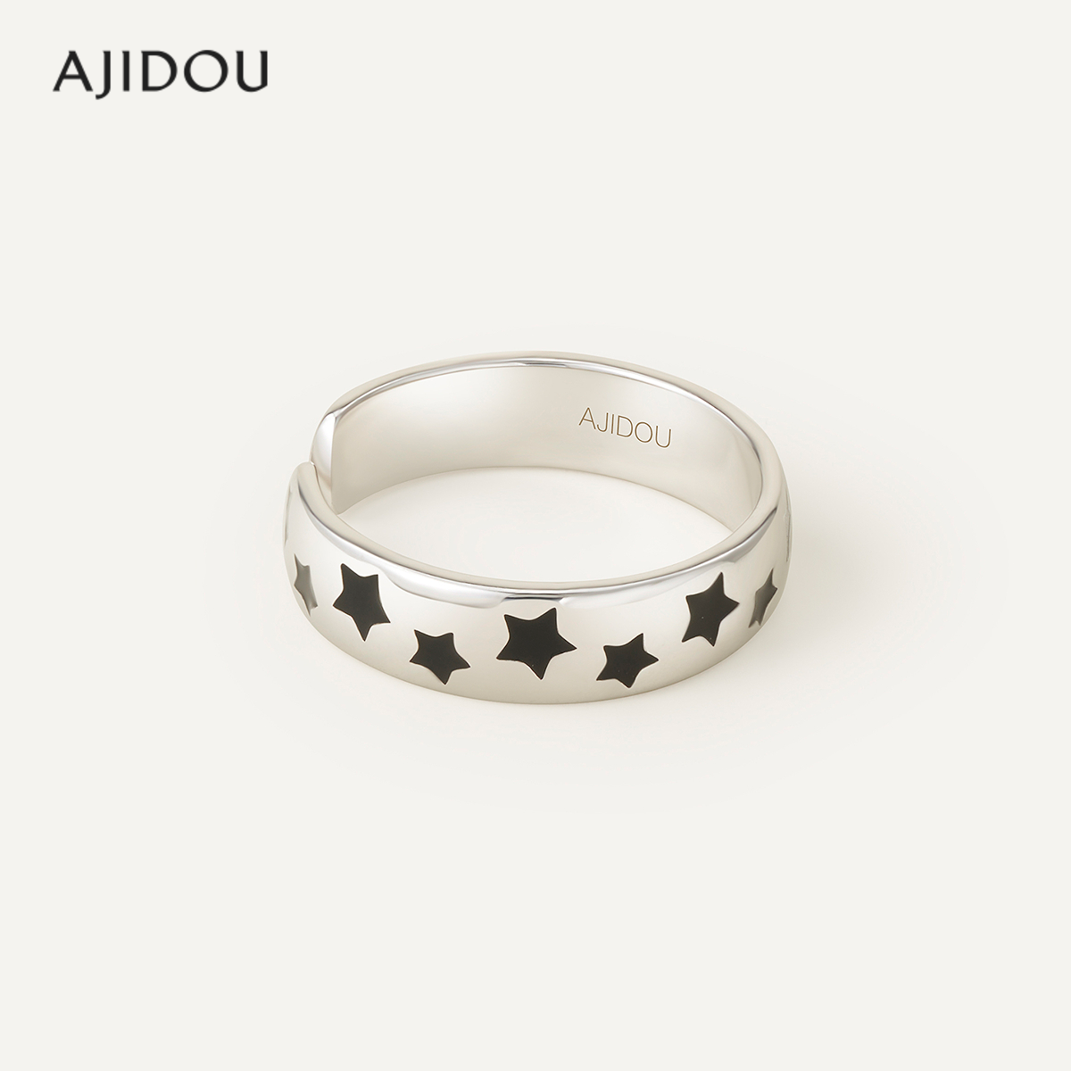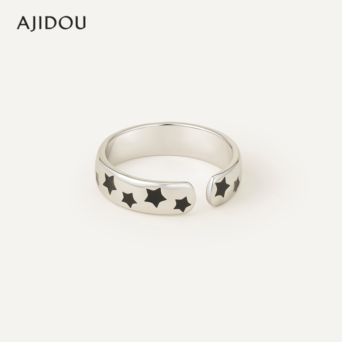 AJIDOU阿吉豆潮酷开口戒指女小众设计满钻开口可调节气质轻奢指环