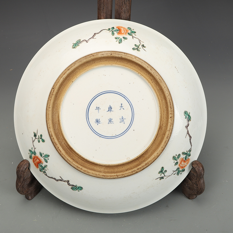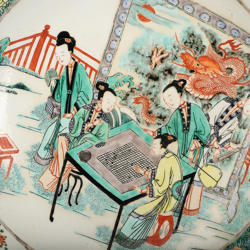 清康熙瓷器五彩侍女下棋图盘古董古玩明清老瓷器旧货老货收藏