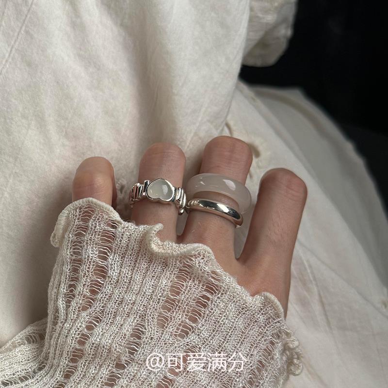 韩系冰透爱心素圈戒指女2025新爆款指环小众设计轻奢高级感食指戒