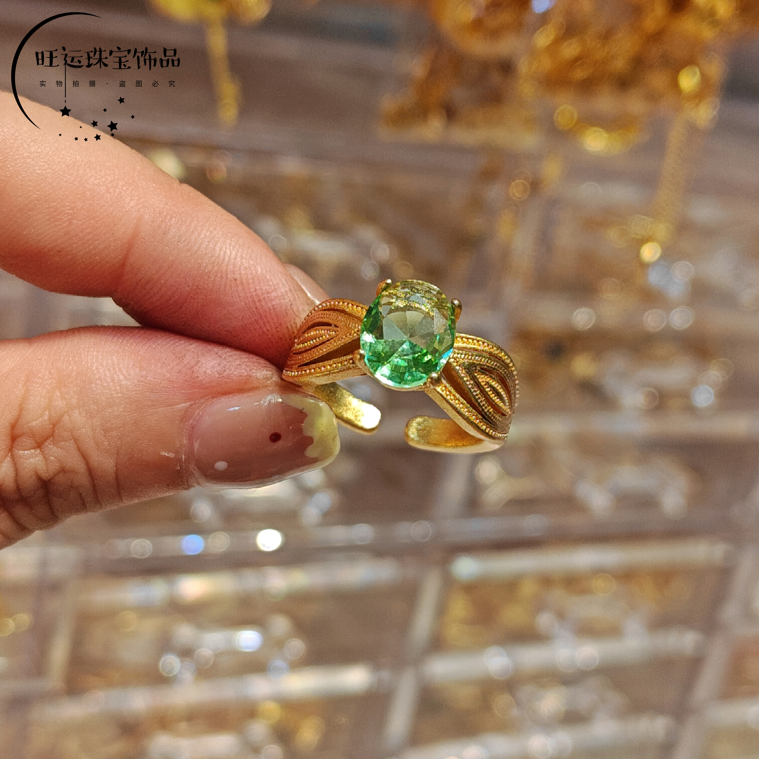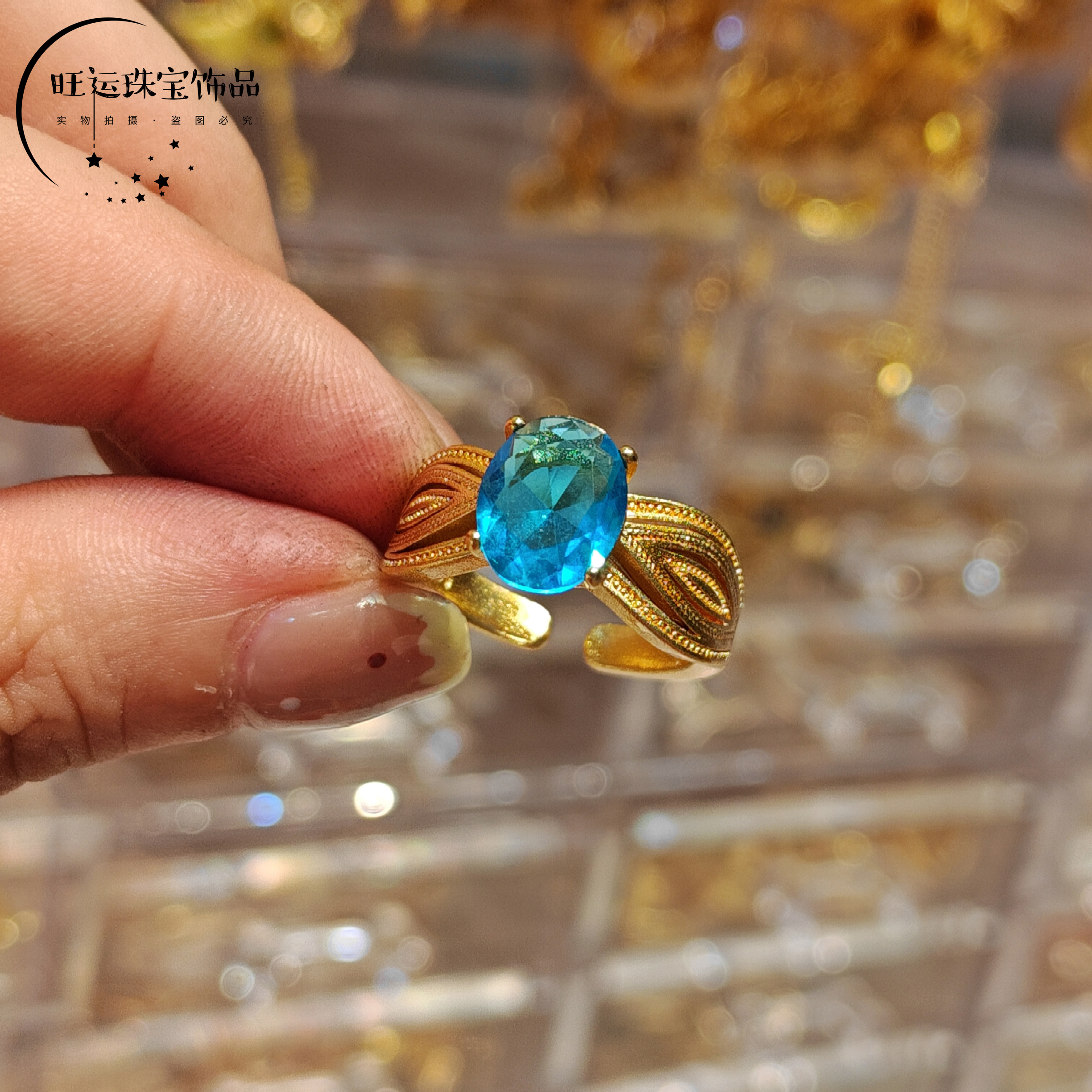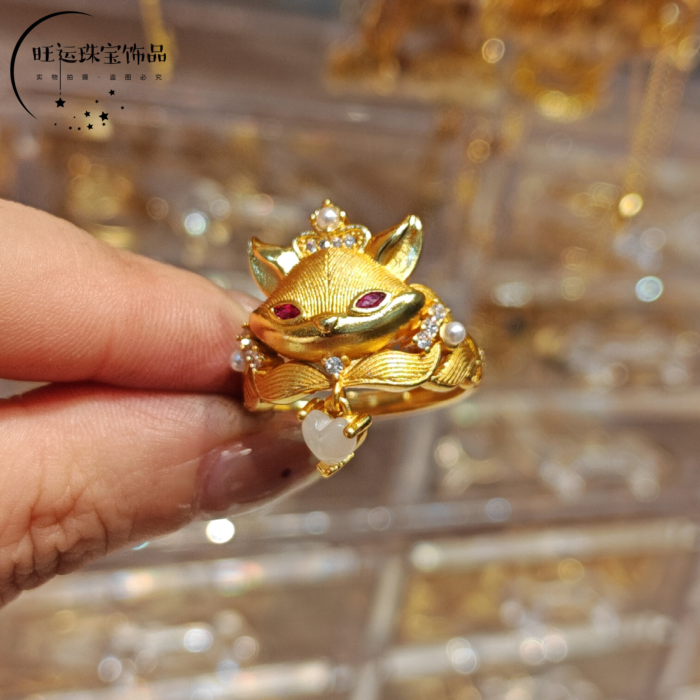 沙金点钻灵狐蝴蝶戒指女爱心桃心食指戒可调节精致戒指
