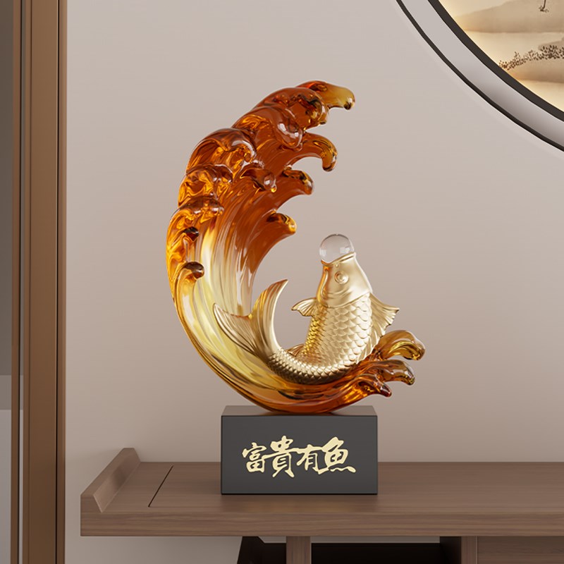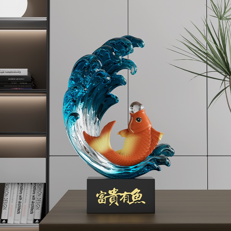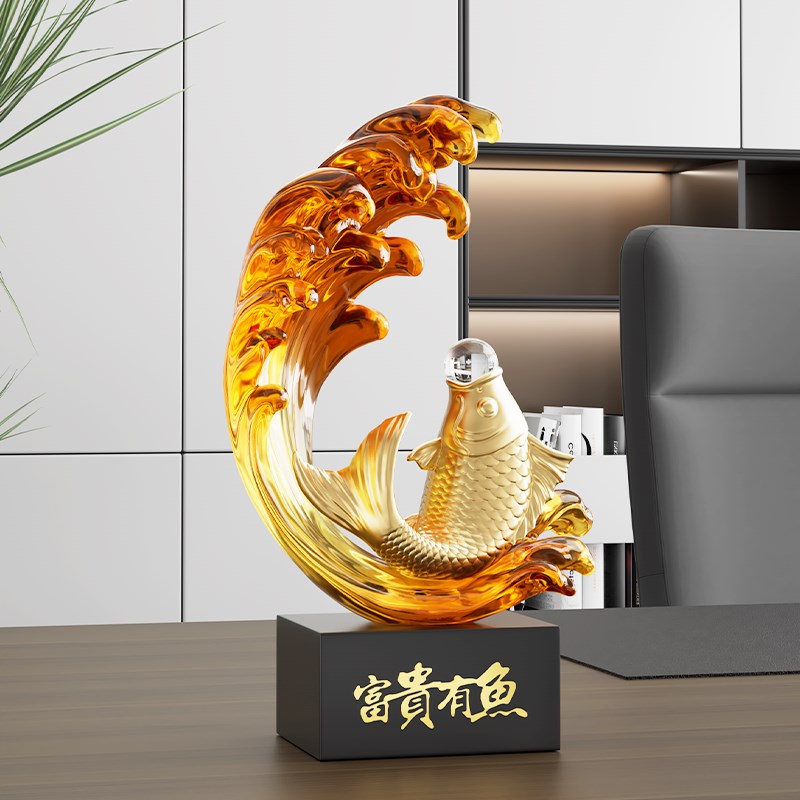 办公室锦鲤鱼桌面招财开业摆件透明工艺品客厅酒柜装饰品乔迁礼物