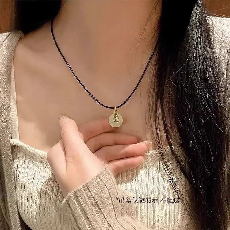 配黄金吊坠挂绳黑色编绳项炼女小皮绳配炼挂件男腊皮绳子颈炼 炼