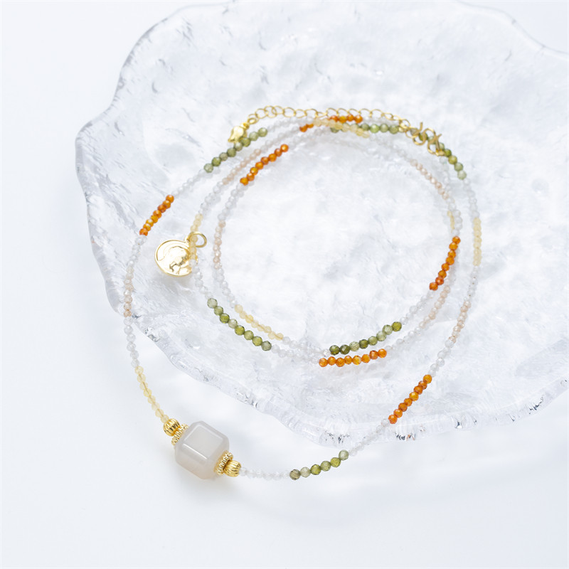 新中式天然石串珠项链轻复古精致百搭项链2025年新款轻奢小众精致