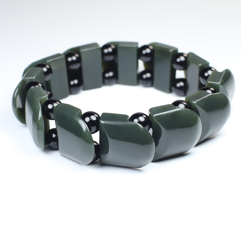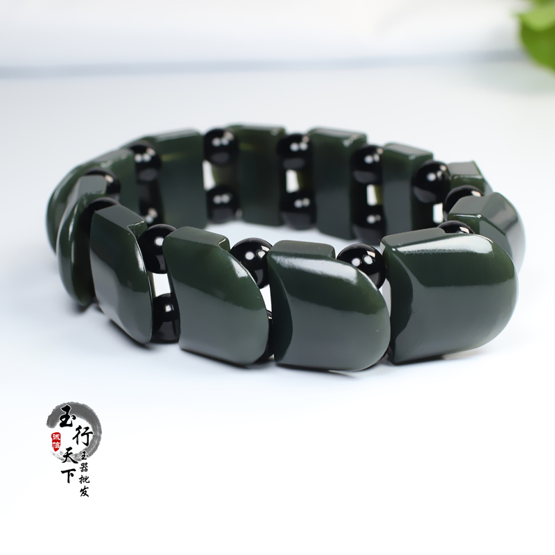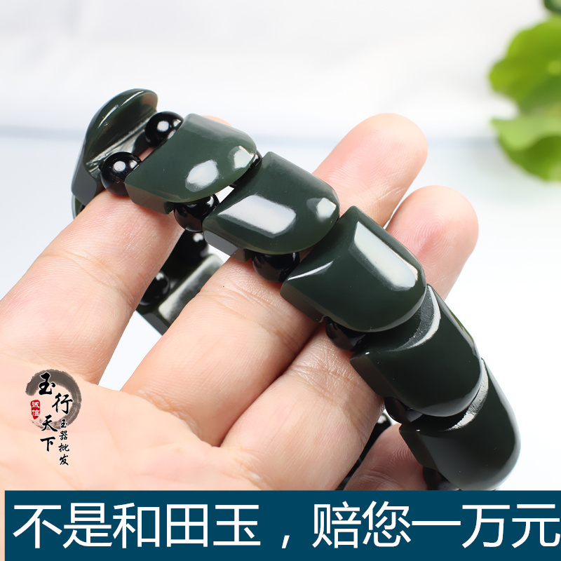 真品和田玉手链新疆青玉龙鳞手排男士女士玉石手串玉器手链带证书