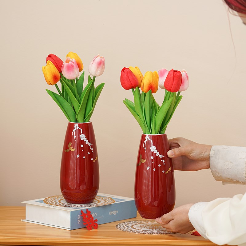 恒列结婚摆件结婚场景布置装饰婚房客厅摆台喜庆红色花瓶备婚用品