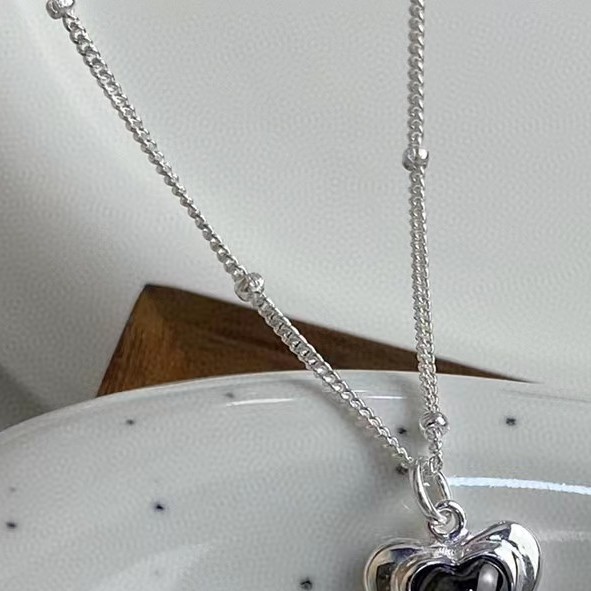 通体S925银2023新款个性锁骨链 日韩轻奢小众设计感黑色爱心项链