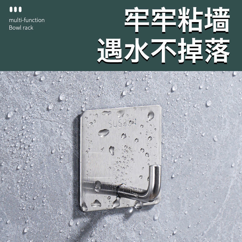 不锈钢挂钩免打孔厨房粘钩墙壁承重金属勾浴室卫生间挂衣服钩衣架