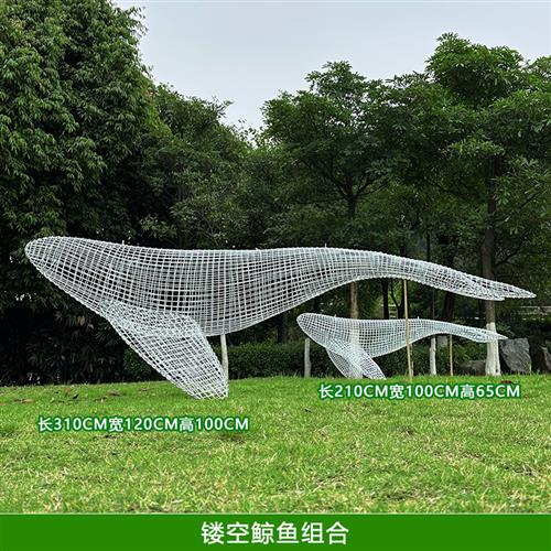户外不锈钢镂空鲸鱼摆件园林景观公园草坪装饰海豚发光动物大雕塑
