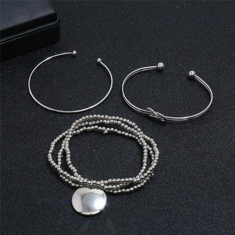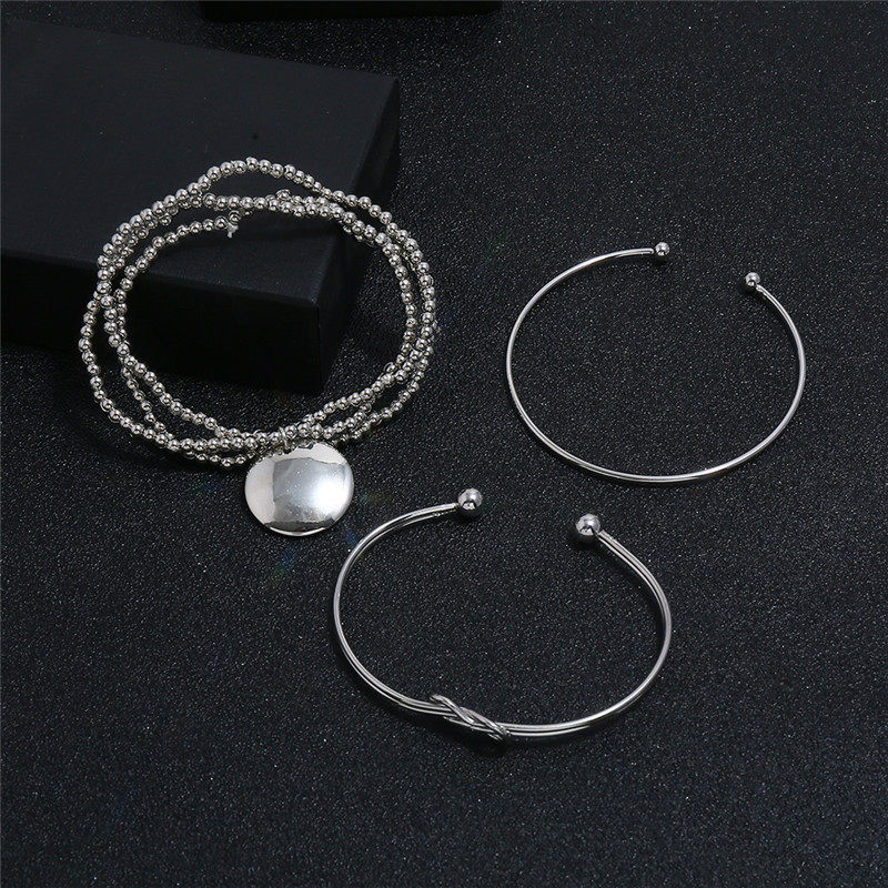 欧美时尚手饰 新款欧美时尚个性几何圆盘吊坠打结开口手链3件套女