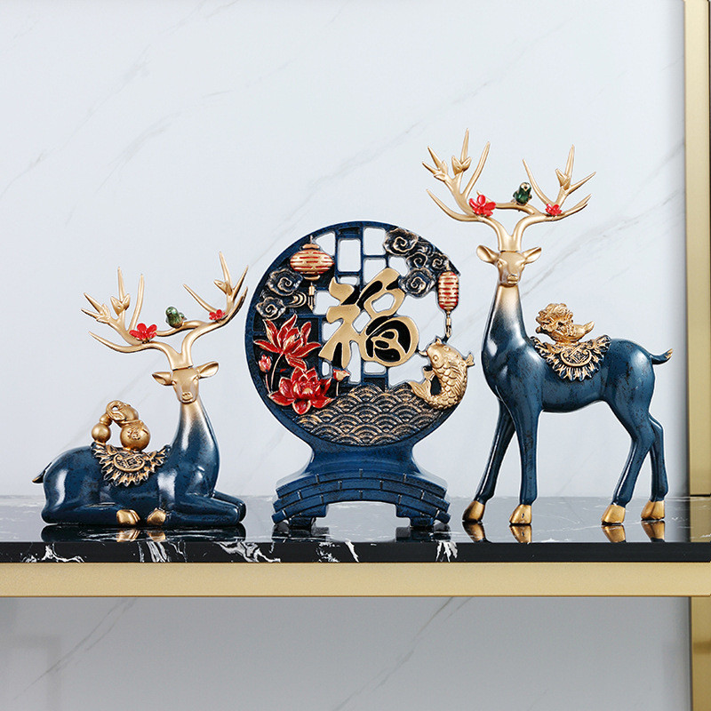 创意家居福字现代麋鹿摆件客厅玄关装饰摆设品会议礼品套装新中式