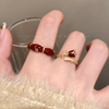 红色滴釉精致玫瑰花开口戒指女复古叠戴食指戒秋冬高级感设计指环