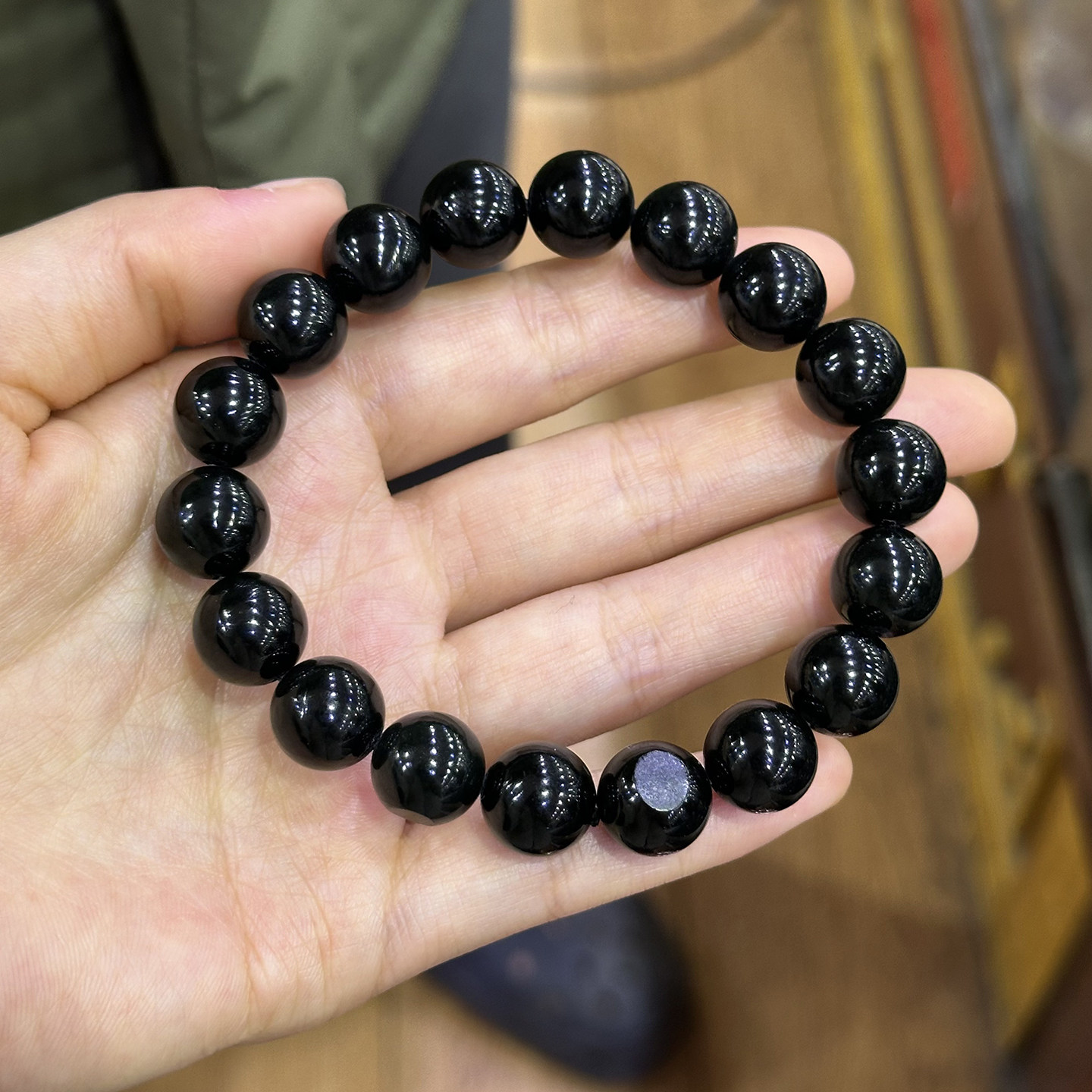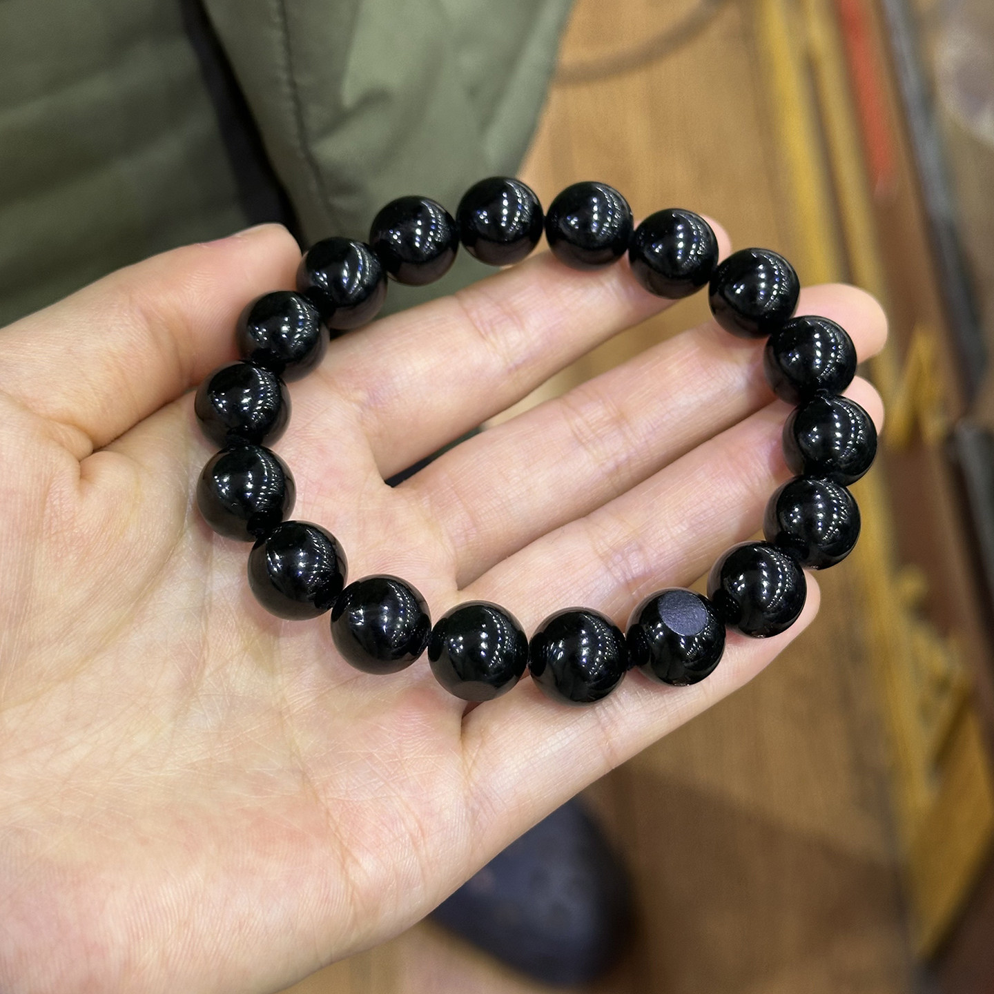 好油润方言和田玉精品佩戴温润新疆黑青籽料12mm圆珠手串手链O