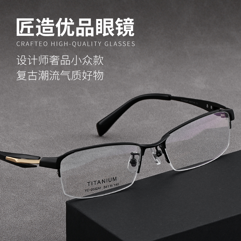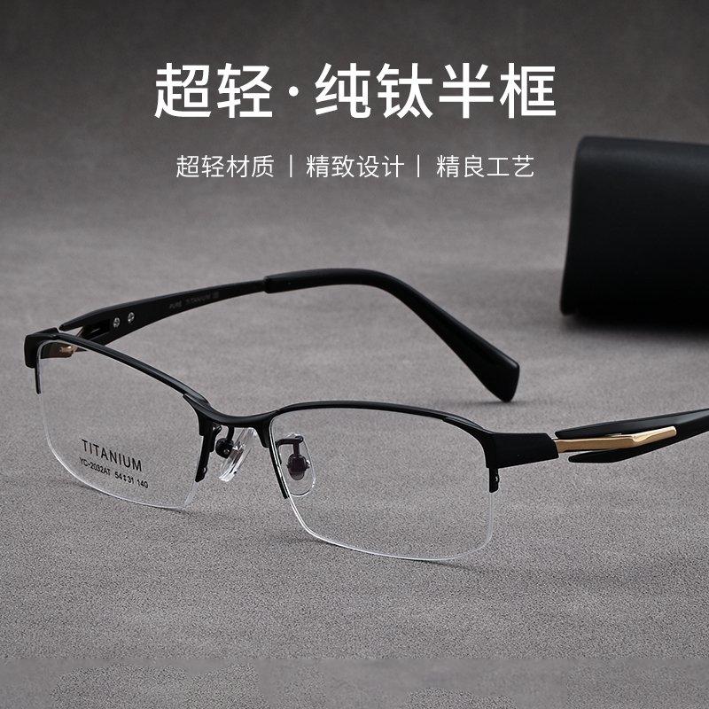 高级设计感商务半框眉线眼镜架男款专业网上配镜片超轻纯钛眼镜框