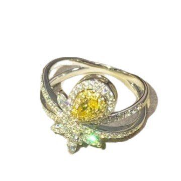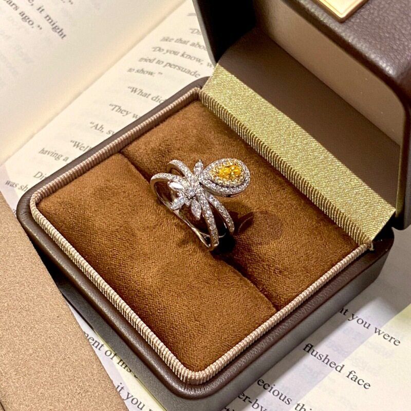 XBK气质锆石微复古水滴镶食指交叉戒指戒百搭欧美高级感小众黄钻