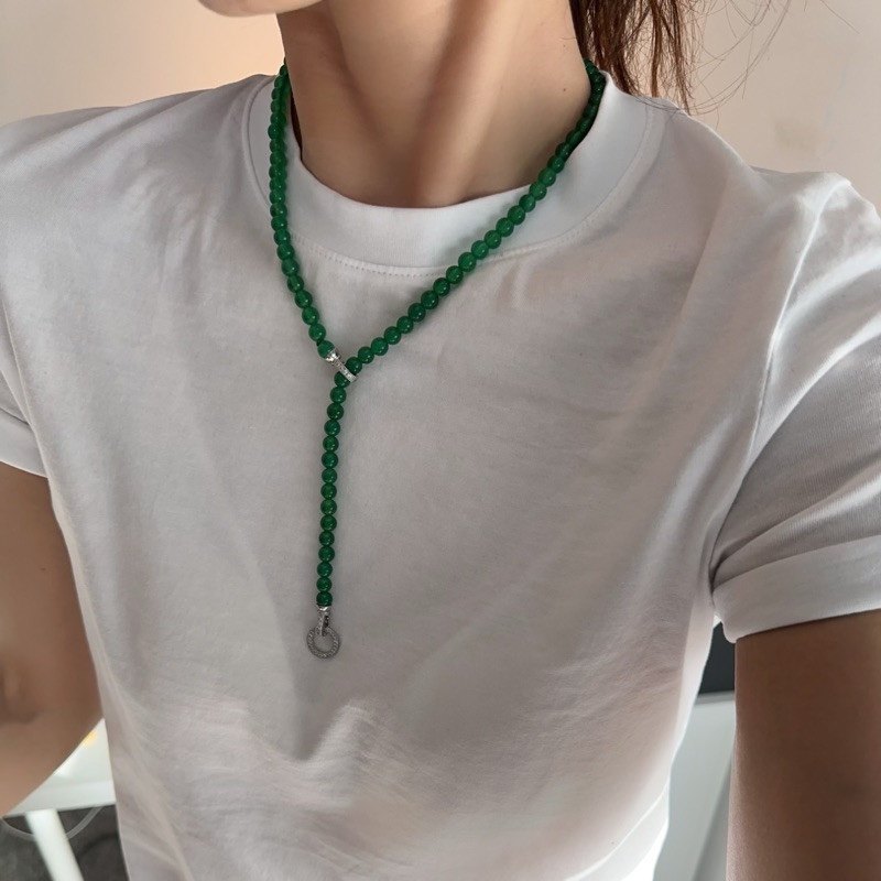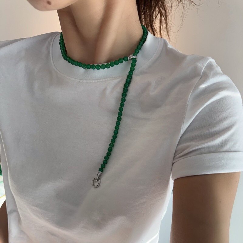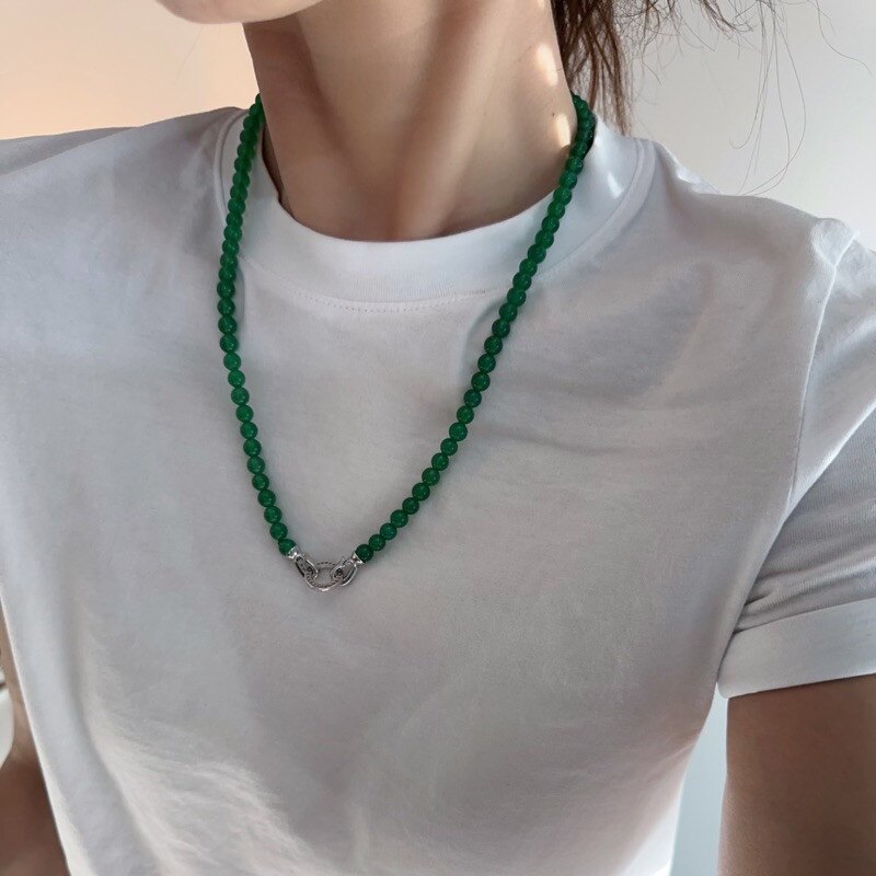 天然冰种阳绿色绿玉髓小米珠项链玛瑙锁骨链毛衣链国风新中式万能