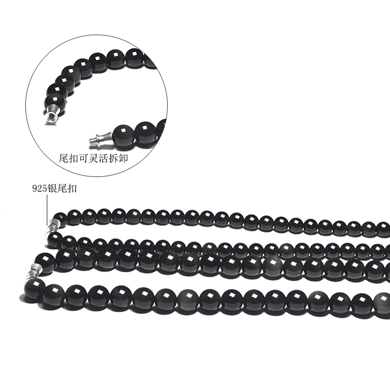 天然彩眼黑曜石短款黑曜石银尾扣项链女绳手工编织本命年吊坠挂绳