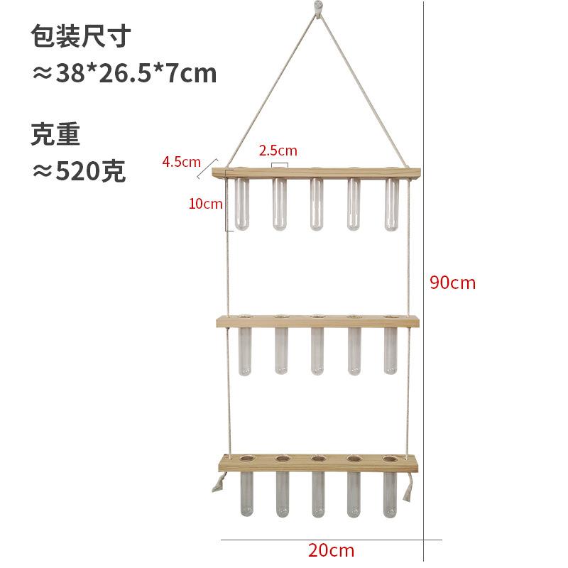 3层5孔挂壁绿植装饰品悬挂式木架试管玻璃花瓶水培植物容器