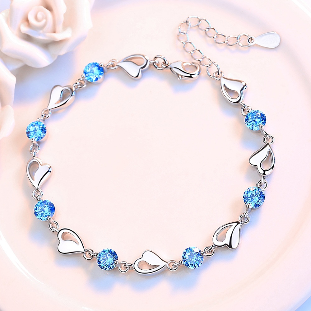 欧美流行首饰首饰蓝心手链女镂空爱心形镀银手链蓝色手饰品配饰