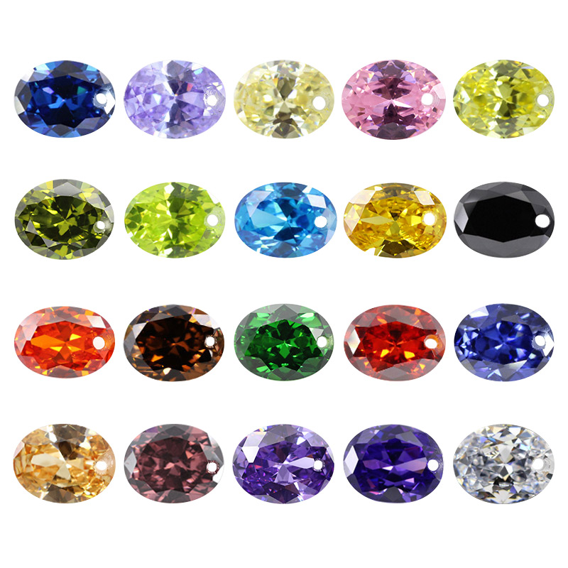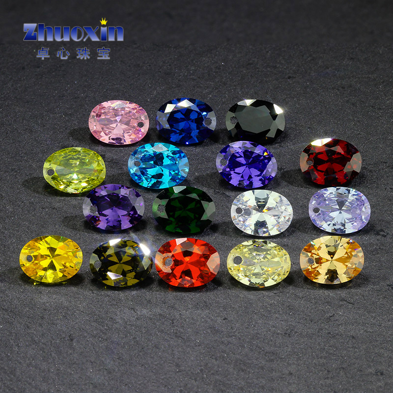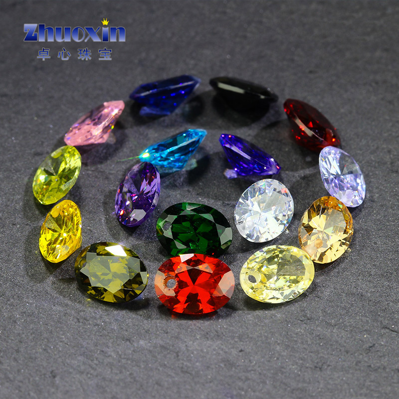 单孔蛋形锆石组合 合成锆石彩色尖底椭圆形裸石耳环耳坠吊坠配钻