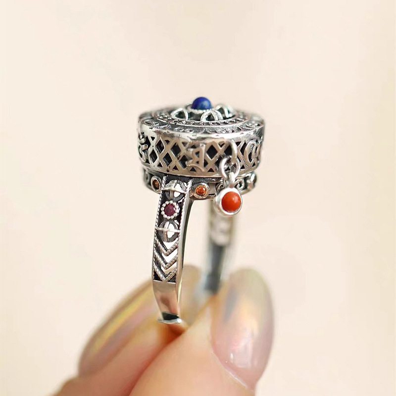 金刚杵六字真言可转动戒指民族风小众设计文艺范