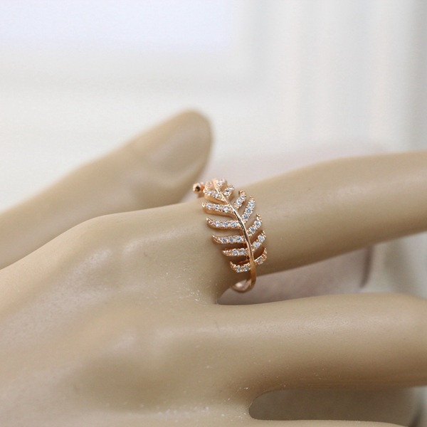 饰品克莱玛时尚开口戒镀金满钻微镶树叶秀气经典戒指